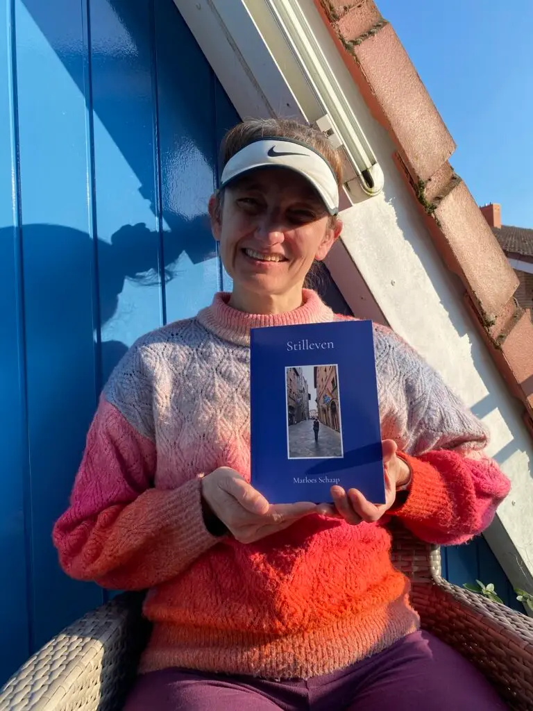 Het boek is in eigen beheer gemaakt. Mijn man nam niet alleen de redactie en opmaak van het boek op zich, maar maakte ook de prachtige, koningsblauwe omslag. Precies zoals ik hem in gedachten voor me zag. We lieten een kleine oplage drukken en gisteren werd de doos bij ons thuis bezorgd. Ik heb mijn eigen boek in mijn handen! Je hebt er als blinde niets aan, maar toch voelt het geweldig. Zo tastbaar! Het heeft als titel “Stilleven” en heeft 132 pagina’s. En het is het boek waar ik het meest trots op ben, omdat hierin echt mijn eigen, authentieke stem doorklinkt. In mijn eigen stijl.